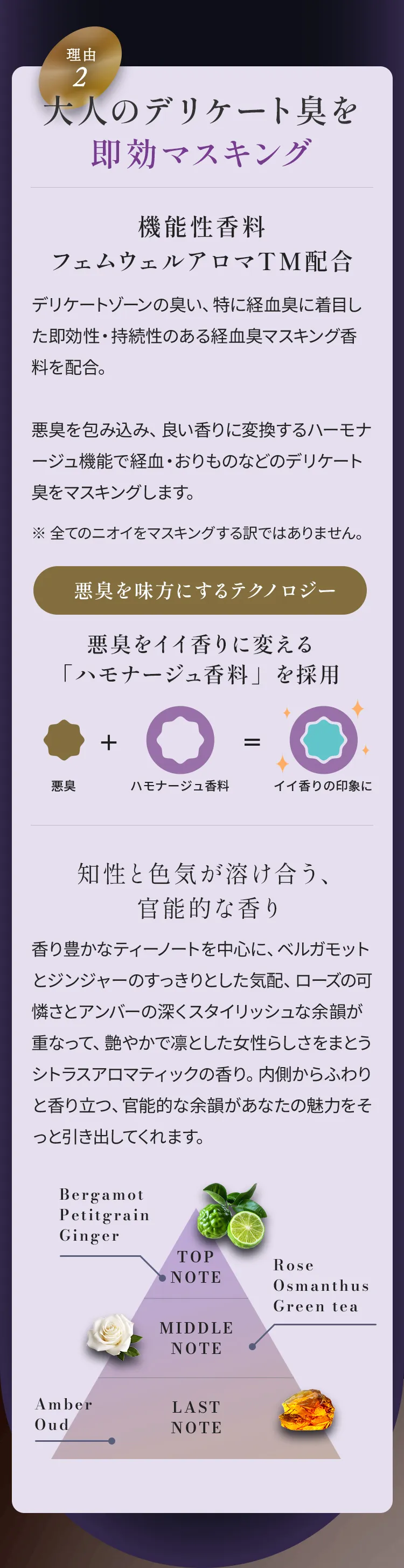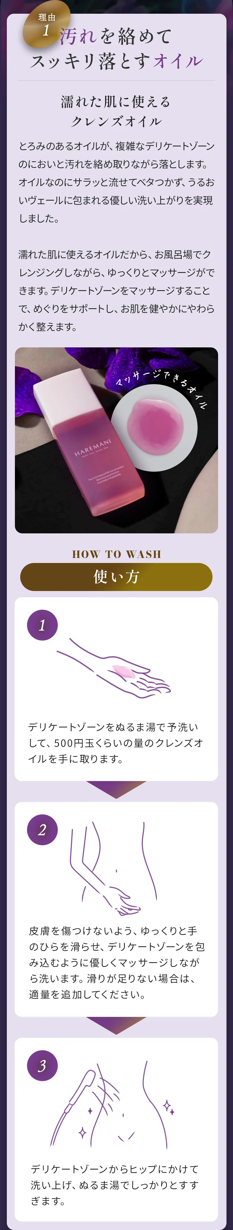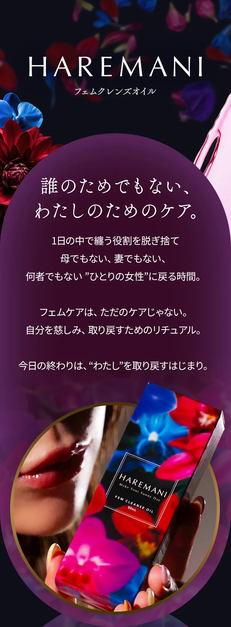 フェムクレンズオイルは、経血によるニオイやムレ、肌の不快感をケアすることを目的に開発されています。
