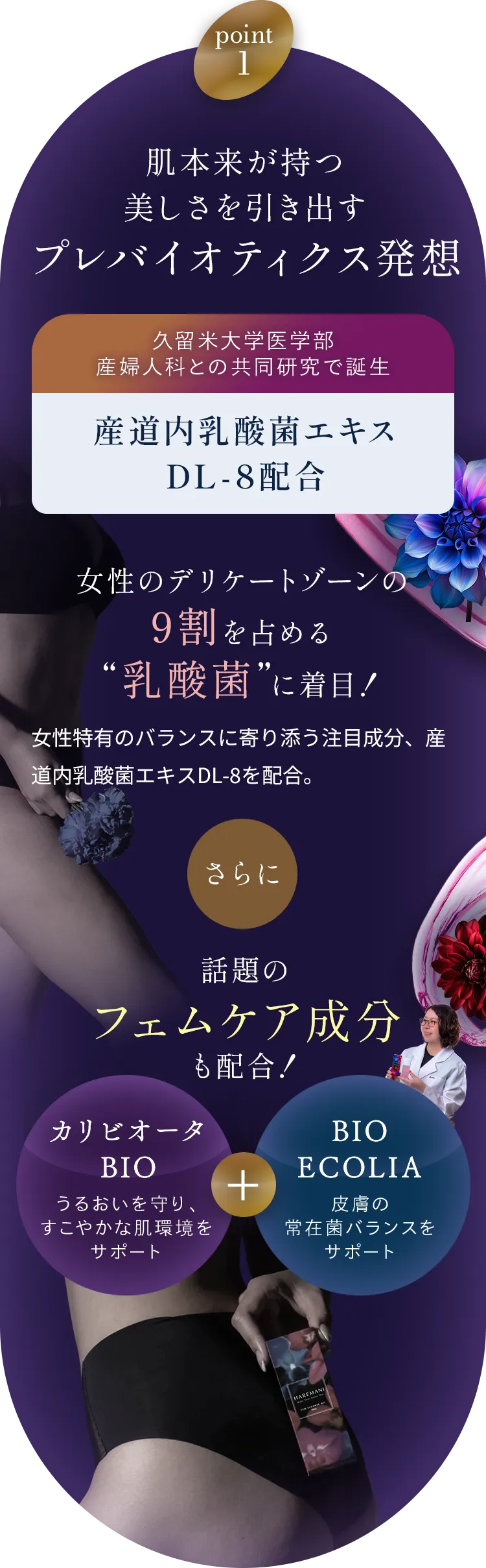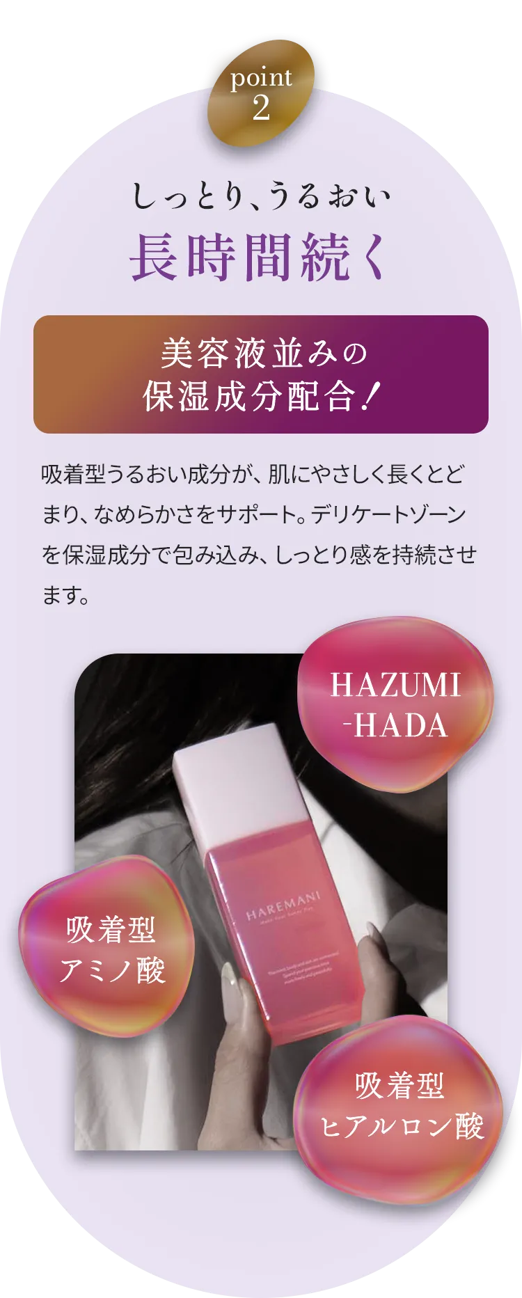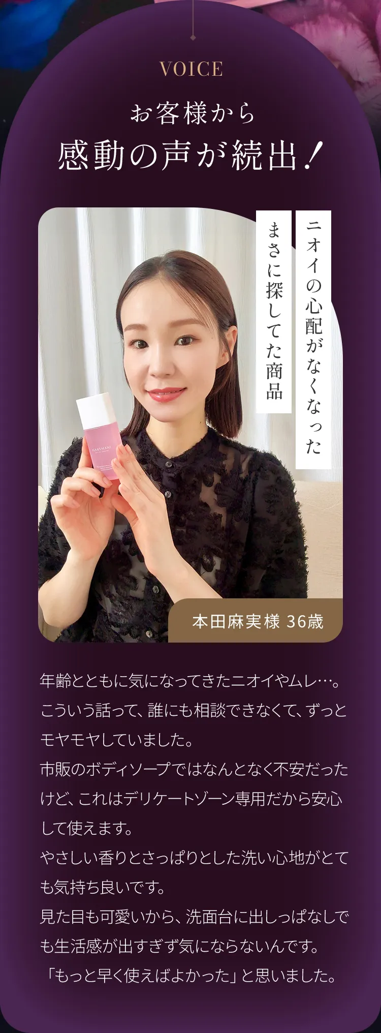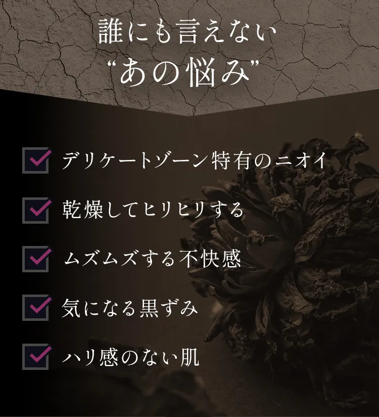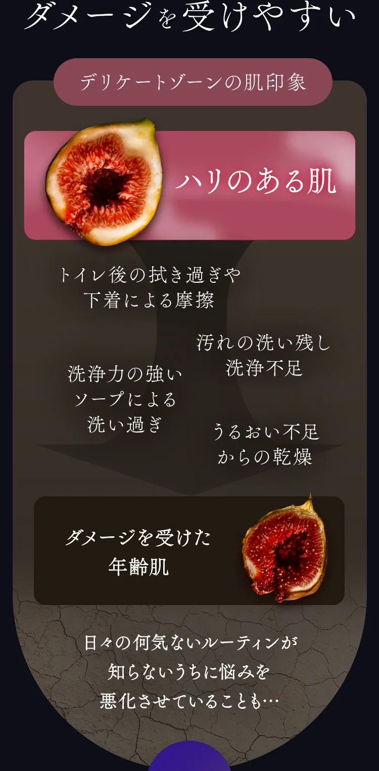 敏感なデリケートゾーンに必要な保湿や整肌成分を配合し、肌の乾燥やニオイ、ハリ不足をケアしながらマッサージ&洗浄できます。